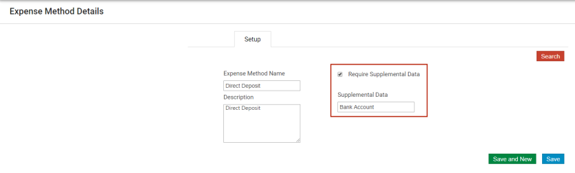 If you select the Require Supplemental Data check box, the page refreshes to include the Supplemental Data field. Use this field to define the data required:
