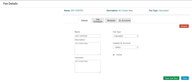 Note: Fees must be designated as Recreation Management fees to be assigned to class records or applied to a template, and the only selection available for Fee Type is Calculated.