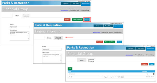 Financial Group maintains groups for program-associated financing. When you create financial groups, you may assign them to specific financial categories.