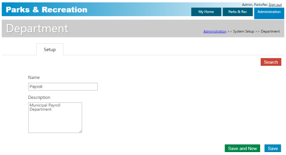 Department manages department records. Use department records to identify personnel associated with the Parks & Rec administration and programs of your community.