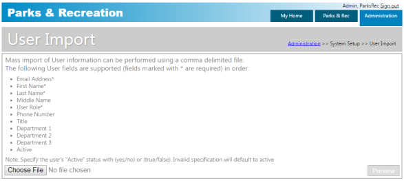 User Import lets you import user details from a comma-separated values (.csv) file.
