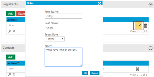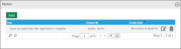 Notes provides additional information for the team. Click the Add or Edit icon to create or maintain notes.