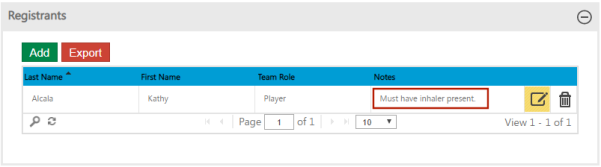 Registrants identifies the participants who have registered for the activity and who are identified as team members.