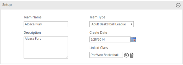 The Linked Class box provides the option for linking a team to a class with a Class Type Format of League Teams in System Settings. In this case, you may update the participant’s team role directly from the Registrants group.