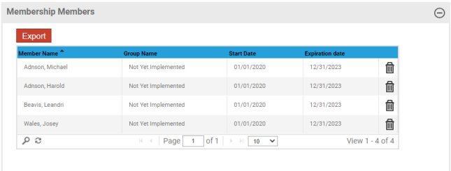 The Membership Privileges table displays the privileges that have been applied to the selected membership.