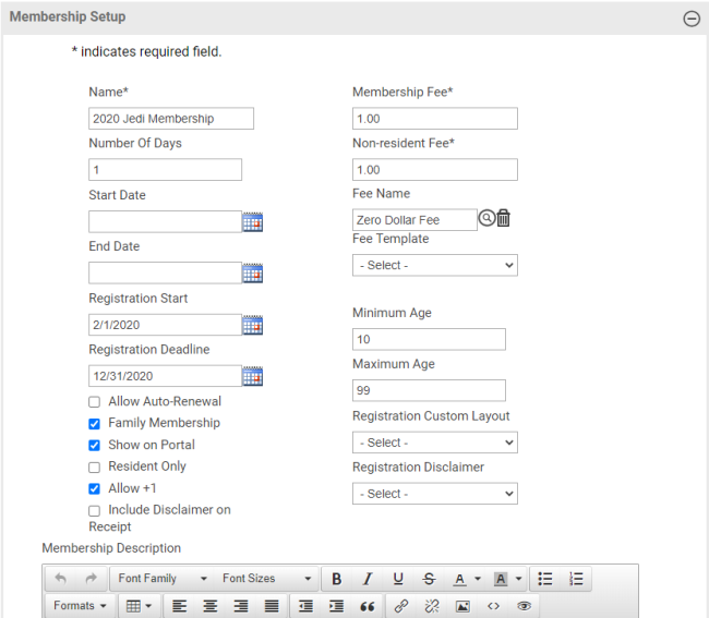 Parks & Rec > Memberships> Create (or Search > Edit)