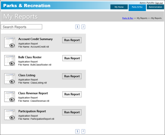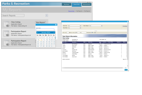 When you click Run Report, the program displays the Start Date and End Date fields for defining the time period for the report. Once you define the dates, the report displays.