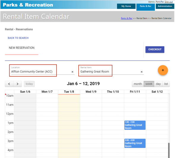 Parks & Rec > Rental Item > Calendar