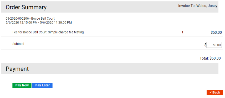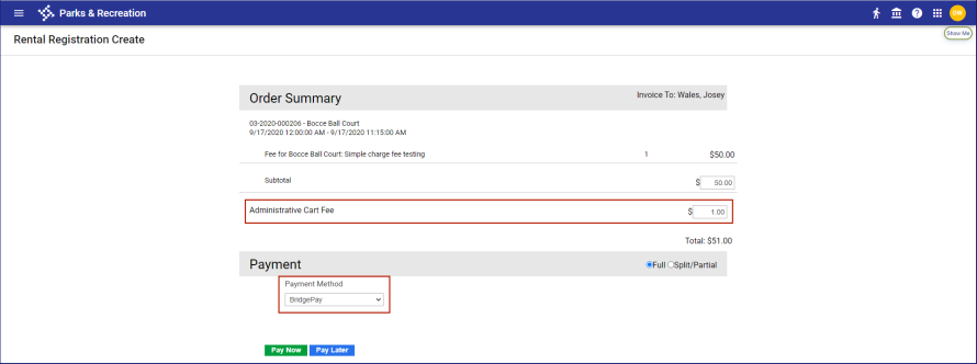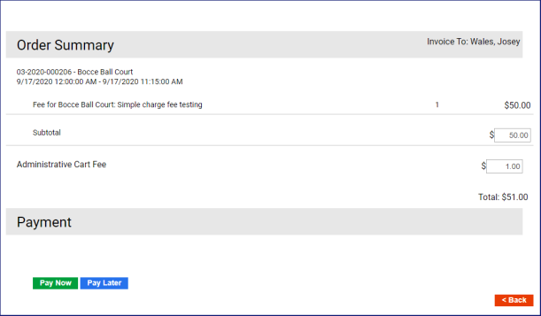 In the Order Summary section, an administrator may modify fees associated with the rental registration prior to payment.