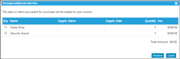 If add-on items are available for an invoiced item, click the expand button (+) for the item to view the add-on selections. You may process the purchase of add-on items directly from this page.