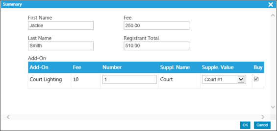 Clicking this button displays the Summary dialog, where you may select or cancel add-on items for the rental.