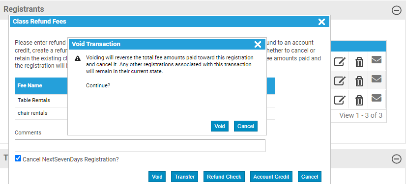 A void for a class previously voided the entire invoice. The process has been enhanced so only the part of the invoice related to the class is voided, leaving other registrations as valid. |