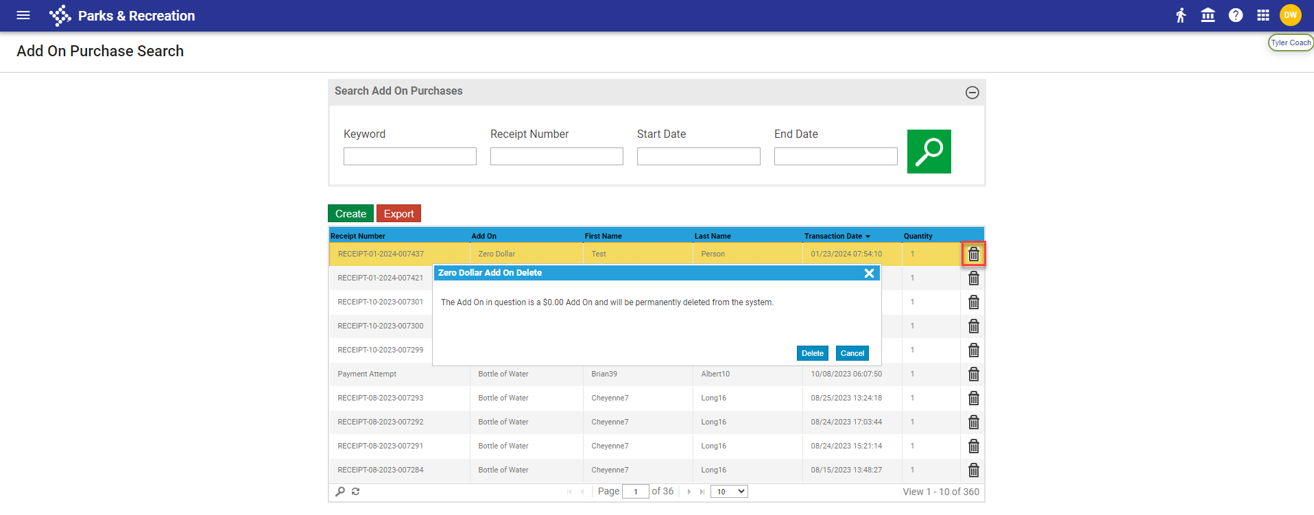 A process has been added to allow the deletion of $0 add-on purchases. |