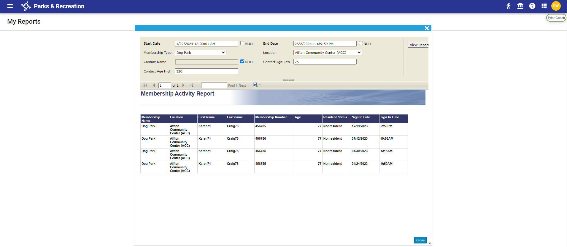 The Membership Activity Report has been added to the My Reports page. |