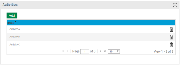 Note: Once an activity has been associated with one or more locations, it cannot be deleted from Activities page in Administration until it has been deleted from the locations.
