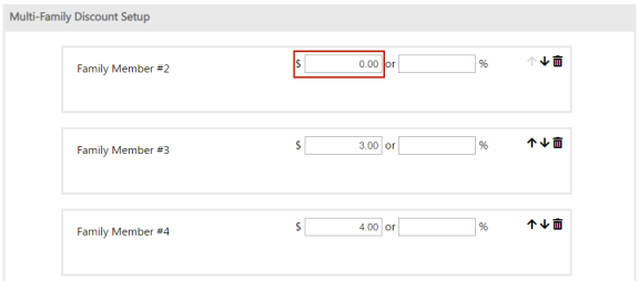 The Multi-Family Discount Setup group of the Discount Details page has been modified to let you have steps with zero-dollar discount amounts: