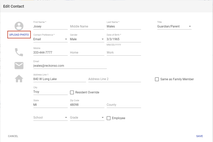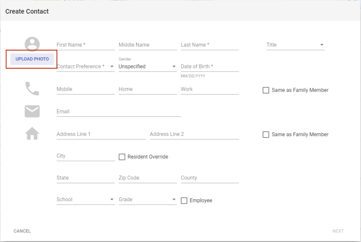 The option to upload a contact photo has been added to the Create Contact and Edit Contact dialogs:
