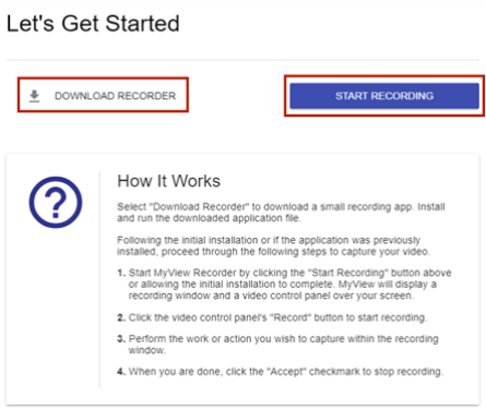 If you have not already done so, download the screen recorder, and click the START RECORDING button.