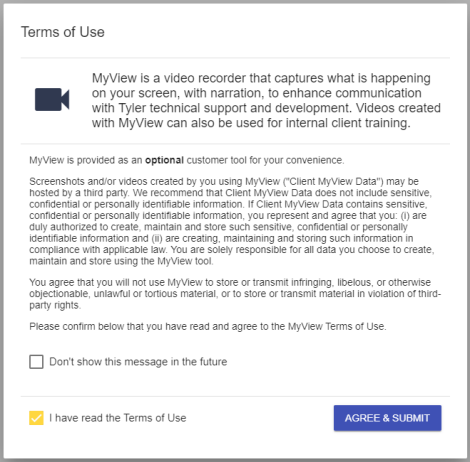 Available from the Parks & Rec Help menu, MyView is a new screen capture tool that lets you record the steps of an application issue and upload the recording to a new or existing support case in CRM: