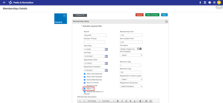 Parks & Rec > Memberships > Search > Edit > Membership Setup