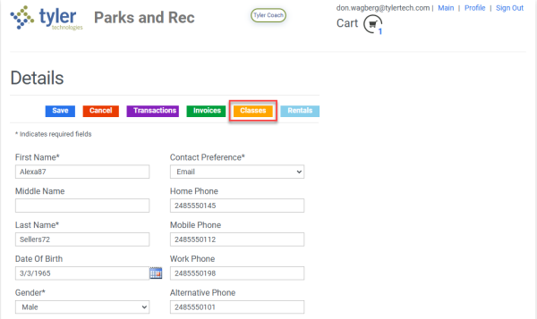 A Classes button has been added to the Profile Details page on the citizen portal: