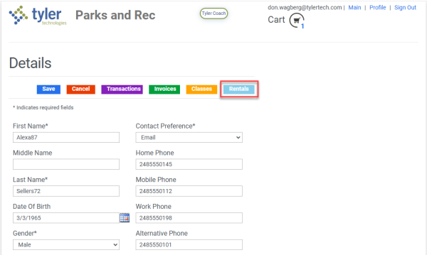 A Rentals button has been added to the Profile Details page on the citizen portal: