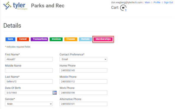 A Memberships button has been added to the Profile Details page on the citizen portal: