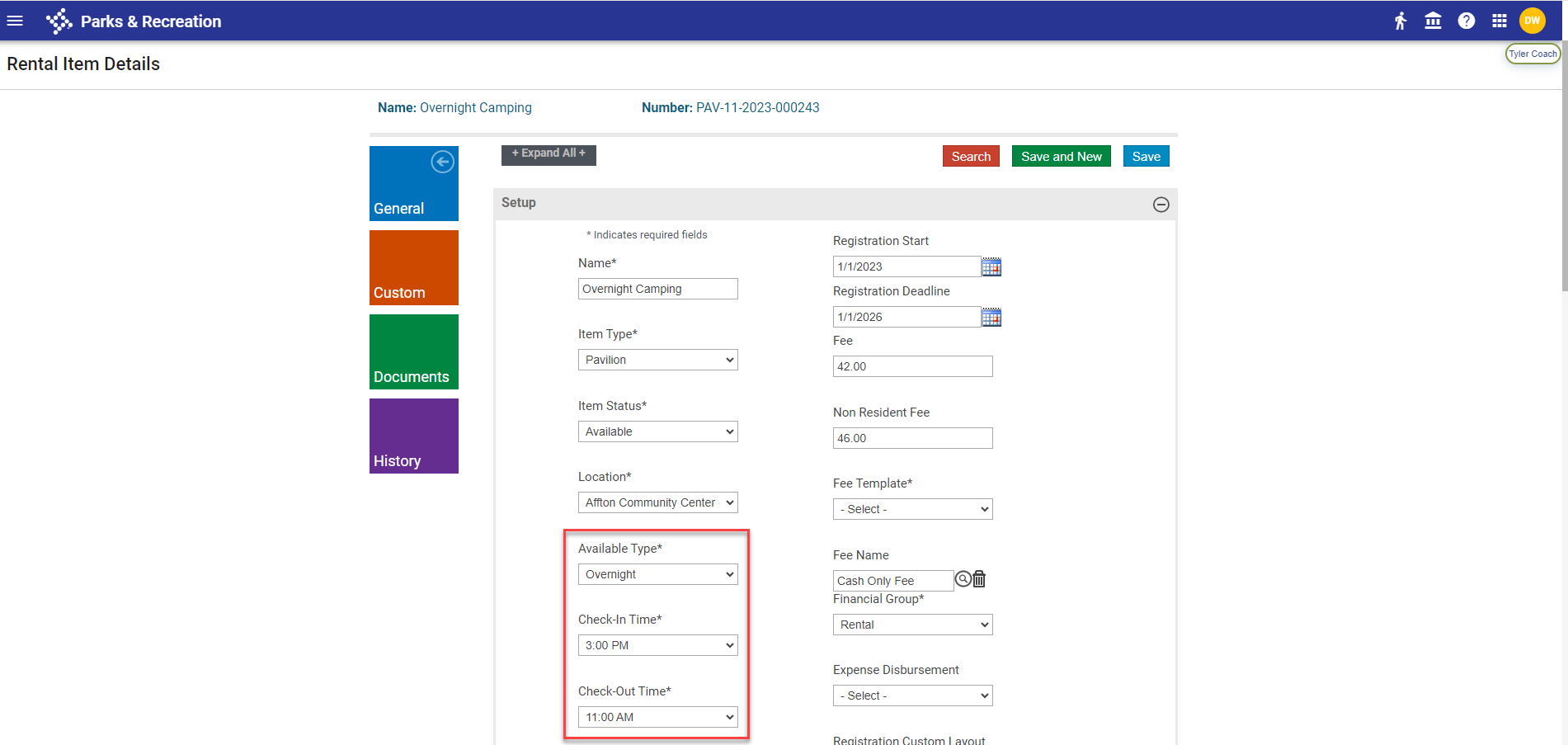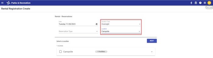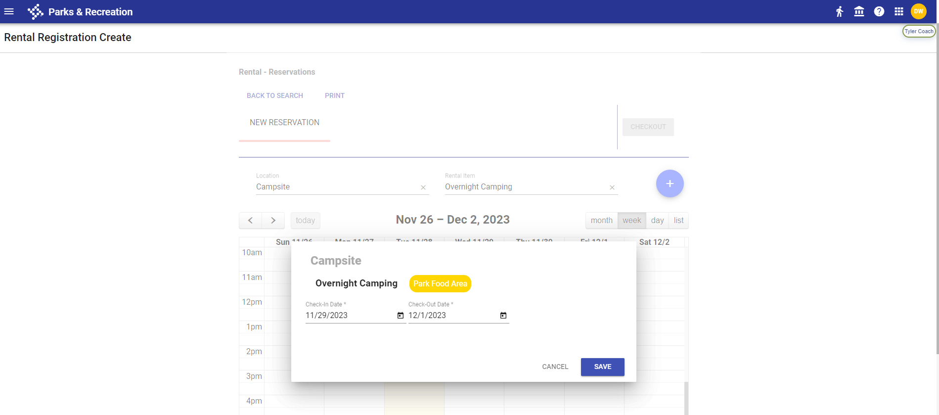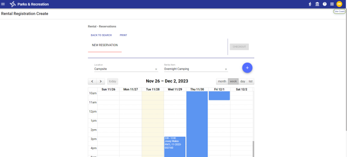 As shown in the following step-by-step, the Parks & Rec application has been enhanced to support overnight rentals: